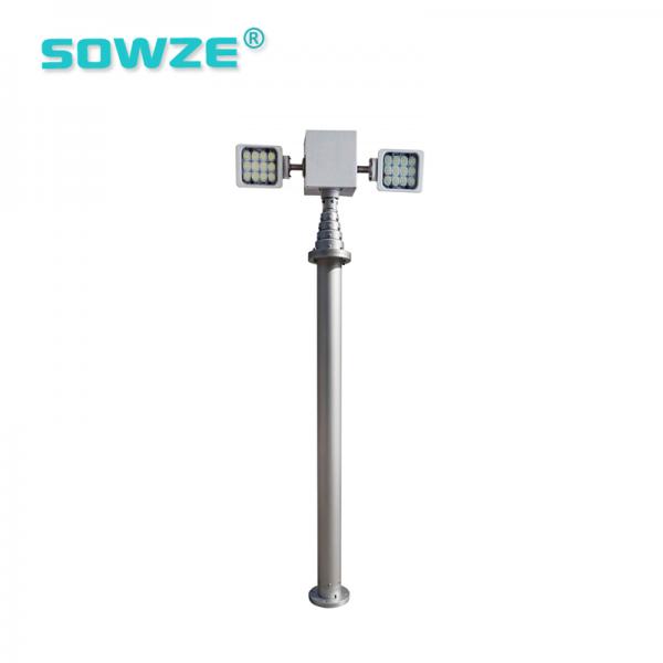專業(yè)型車載升降桅桿在車頂開孔固定,將燈具連同云臺舉升至3-15米的高度,實現(xiàn)燈塔式的高空、大面積的強光照明。適合如通信指揮車輛、照明車輛、救援車輛、消防車輛等大型特種車輛配備。